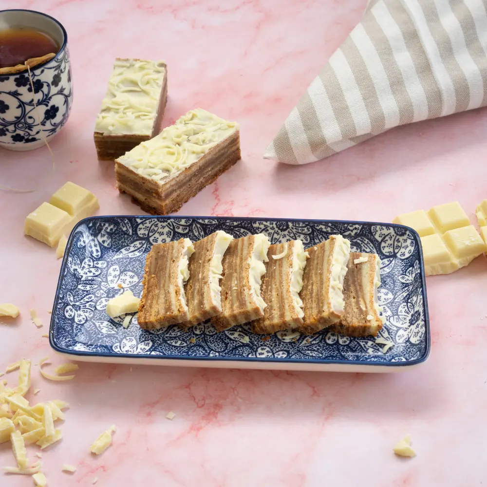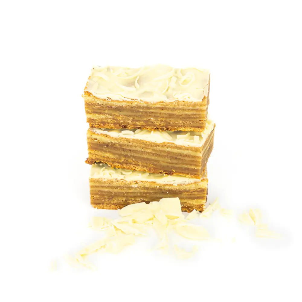 Door de witte chocolade is deze spekkoek een zoetere variant van de traditionele smaak en een favoriet bij jong en oud!